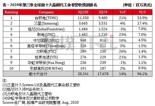 在芯片代工排名里面,三星是只计算代工业务+system LSI(large scale integration)业务的收入。并不计算其存储器部门的收入。