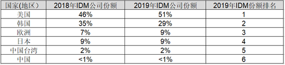 我们还是根据本文最开始IC Insight的图,2019年全球各国(区域)IDM公司营收的份额和排名如下,美国占了全球51%,韩国占了29%,欧洲和日本各占了9%。