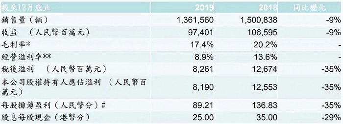 业绩报告显示,2019年,吉利汽车营收974亿元,较2018年下滑9%;净利润为81.89亿元,同比降低35%。