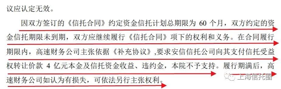 导读:判决只是兜底协议无效,不承担刚性兑付义务,并非安信信托不承担还款义务!另行主张权利意思是:湖南高速财务公司信托合同到期后还是可以基于信托合同主张清理信托底层资产,底层资产的回款收益权还是属于高速财务的。