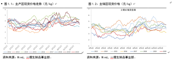 受2019年高补栏影响,2020年全年鸡蛋供应偏多,需求偏弱。鸡蛋全年现货均价在3.07元/斤,处于历史低点,平均养殖利润为0.17元/斤(仅考虑饲料成本),考虑到人工水电等其他成本,大部分养殖户2020年处于亏损区间。受季节性及存栏下行影响,下半年现货价格明显好于上半年,但仍处于历史同期较低水平,并且受全年饲料价格上行影响,蛋鸡养殖利润空间进一步被压缩。