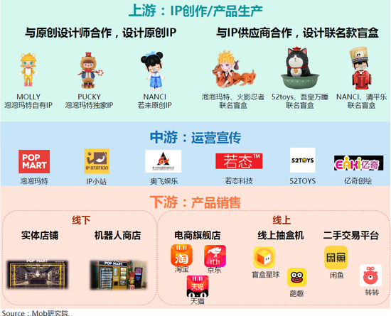 盲盒起源于日本的福袋,已经在社交场合被赋予超越本身的意义。其上下游产业链清晰,并已涌现泡泡玛特、IP小站等代表企业。盲盒独特的购买方式,使得用户拆盲盒时会对未知的款式附赠强烈的惊喜感,甚至这种惊喜感的价值会高于商品本身。国泰君安分析师陈筱称,潮流玩具中,盲盒为Z世代带来惊喜感、收藏欲,并具有交易价值和社交意义,因此已成为年轻一代新玩具以及社交货币。