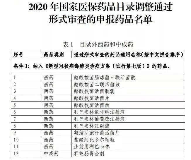12月28日,2020医保谈判结果出炉,共119种药品被新增进入医保目录,另有29种原目录内药品被调出目录。调整后,新版目录的药品总数为2800 种,其中西药1426种,中成药 1374 种,中药饮片为892种,将在2021年3月1日起在全国正式启用。