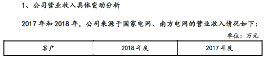 2018年,公司来源于南方电网收入下降,主要原因是2017年开始由南网统一招标变为各省网公司分别招标,受此影响,省网公司同类产品招标价格相对较低,毛利率降幅较大、质保金回款周期相对国网较长。因此公司综合考虑盈利以及资金成本,降低了同南网开展业务意愿,来自南网收入随之减少。