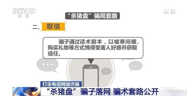 二、取信。骗子通过话术剧本,以嘘寒问暖、购买礼物等方式博得受害人好感并获取信任。