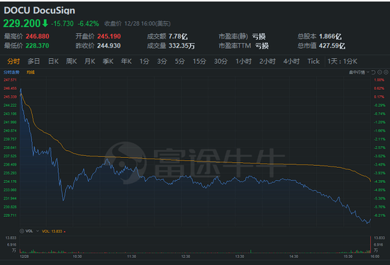提供云服务的DocuSign今年股价涨幅超200%,但在周一也下跌了超过6%。
