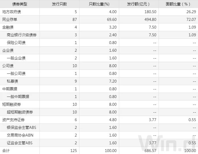 从发债类型看,12月29日,债券市场共发行地方政府债5只,同业存单87只,金融债4只,企业债2只,公司债10只,中期票据1只,短期融资券10只,资产支持证券6只。
