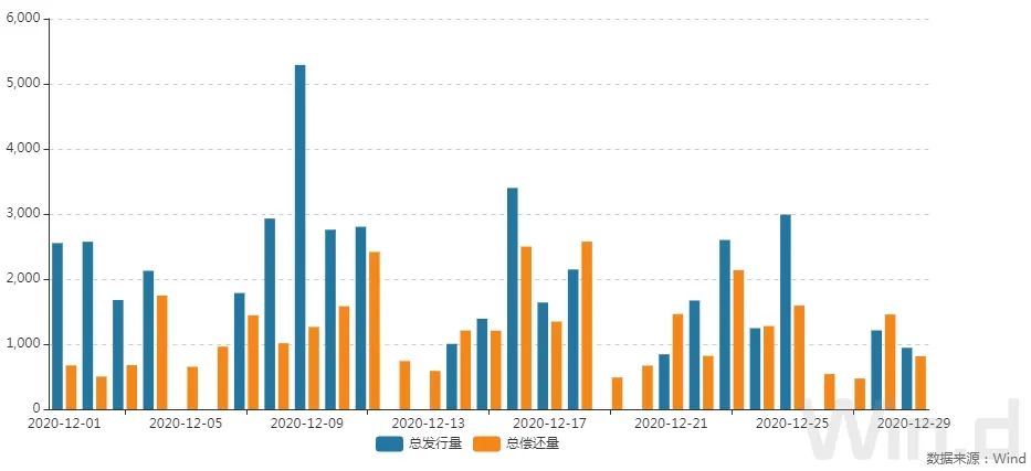 12月29日,债券市场共发行125只债券,总发行量944.25亿元,98只债券到期,9只债券提前兑付,1只债券回售,无债券赎回,总偿还量813.71亿元,当日净融资额为130.54亿元。