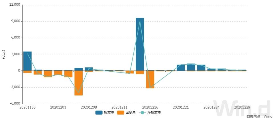 央行公告称,为维护年末流动性平稳,12月29日以利率招标方式开展了200亿元7天期逆回购操作,中标利率2.20%。Wind数据显示,当日有100亿元逆回购到期,净投放100亿元。