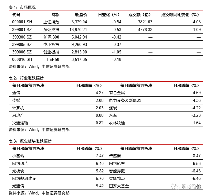 2020年12月29日,银存间质押式回购加权利率大体上行,隔夜、7天、14天、21天和1个月分别变动了-3.4bps、15.5bps、2.11bps、20.45bps和0.93bps至0.61%、2.23%、2.87%、3.03%和3.05%。国债到期收益率全面下行,1年、3年、5年、10年分别变动-1.85bps、-0.47bps、-0.74bps、-0.75bps至2.55%、2.85%、2.99%、3.16%。上证综指下跌0.54%至3379.04,深证成指下跌0.53%至13970.21,创业板指下跌1.05%至2813.00。