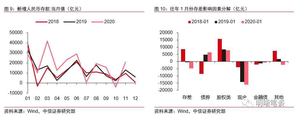 如何看待信贷因素:缴准压力上升。1月是传统的信贷大月,商业银行出于“早投放早受益”的动机往往在开年月份多释放信贷额度。信贷投放带来的存款增加会加大银行缴准的压力,但存款总量也同样受到银行购债以及现金总量变化等因素的影响。预计明年年初政府债发行的增加或将推升存贷差,结合1月“抢信贷”的情况,银行缴准压力或较往年更大。