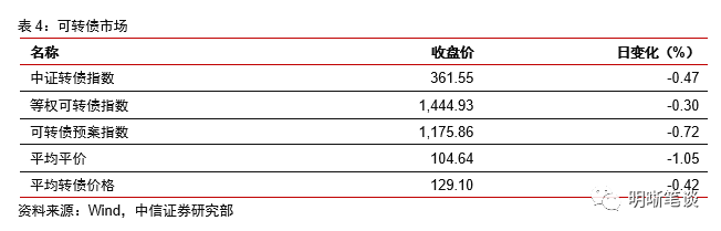 12月29日转债市场,中证转债指数收于361.55点,日下跌0.47%,等权可转债指数收于1,444.93点,日下跌0.30%,可转债预案指数收于1,175.86点,日下跌0.72%;平均平价为104.64元,日下跌1.05%,平均转债价格为129.10元,日下跌0.42%。330支上市交易可转债(辉丰转债除外),除博世转债停盘外,173支上涨,156支下跌。其中永鼎转债(23.83%)、盛路转债(21.28%)和新天转债(9.83%)领涨,上机转债(-13.18%)、雅化转债(-13.14%)和蔚蓝转债(-12.48%)领跌。327支可转债正股(*ST辉丰除外),除博世科停盘,永安行、景兴纸业、大胜达、中船应急、利群股份、荣晟环保、中信银行、光华科技、兄弟科技和吉视传媒横盘外,168支上涨,148支下跌。其中起步股份(10.02%)、新天药业(9.99%)和烽火通信(9.99%)领涨,运达股份(-10.10%)、雅化集团(-10.02%)和中矿资源(-10.00%)领跌。