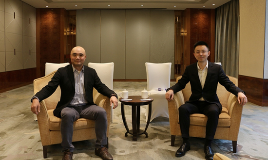 雷士照明CEO林良琦(左)、涂鸦智能创始人兼董事长陈燎罕(右)接受采访