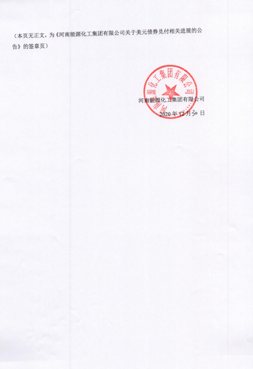 河南能源化工集团公告称,6250万美元债券原应于12月28日付息,现其持有人同意本期债券本金先行兑付50%,剩余50%展期,展期期限18个月,展期期间年利率6%,每半年付息一次。