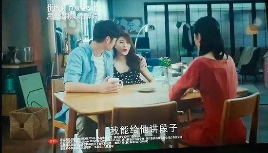在这条中插广告中,一个红衣打扮的“第三者”坐在餐桌上,对着妻子说,“我能给他(指丈夫)讲段子,我能跟他聊新闻,我还能跟他打游戏,你能吗?”,而妻子则掏出一盒优思明面带骄傲地说,“这个你能吗?”第三者见状变回了原型,原来其实是丈夫的手机。