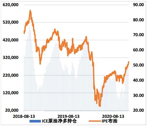 进入四季度,疫情的全球二次爆发愈演愈烈,气温转冷,状况呈现恶化趋势,市场信心下挫,随着11月初美国大选的进行,部分资金开始离场观望,此外利比亚停火协议达成,原油出口爆发式增长,其产量迅速回升至100万桶/日以上,亦对市场造成较大打击。不过随着11月初美国大选尘埃落定,拜登荣登总统宝座,Trump方面难以撼动结果,政治局势上的稳定为市场提供信心。此外,随着多种疫苗有效性公布,市场对需求恢复预期十分乐观,原油自11月上旬开始持续上涨,外盘原油已回补疫情爆发时的巨大缺口,布油重回50美元上方。