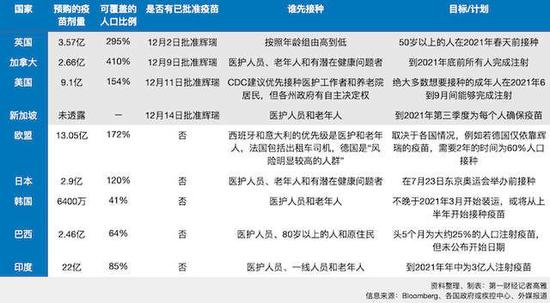 即便如此,仍有诸多国家争先预定疫苗。英国成为世界上第一个批准将辉瑞制药有限公司与德国BioNTech公司合作研发的新冠疫苗广泛使用的国家。据悉英国已经订购了4000万剂疫苗,足以给2000万人接种。欧洲药品管理局则计划在12月开会讨论是否要批准辉瑞疫苗以及美国莫德纳(Moderna)公司的新冠病毒疫苗。一旦获批,欧盟27个国家将从年底相继开始接种工作。此外,美国食品药品监督管理局(FDA)在当地时间12月11日紧急批准了由美国制药公司辉瑞和德国BioNTech公司联合开发的新冠疫苗。14日,美国正式启动新冠疫苗接种,免费向美国公民发放。辉瑞公司已与美国政府达成协议,今年年底前提供多达2500万剂的疫苗,在明年三月前提供1亿剂疫苗。