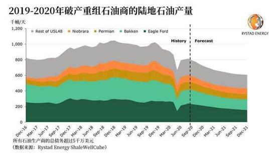 受新冠疫情影响,北美多家石油生产商在今年陆续申请破产保护。近两年申请破产保护的石油公司为美国页岩油行业贡献了约80万桶的日产量,这些公司分布地区不均——在Eagle Ford和Bakken地区的石油日产量占很大比重,接近40万桶,而在二叠纪盆地的日产量仅有8万桶。挪威能源咨询公司Rystad Energy直言,2021年美国页岩油产量将减少四分之一,预估每天减产20万桶。这一损失可能会抵消2021年全国石油产量增长的预期。Rystad Energy负责人称:“北美石油勘探生产公司的破产影响着整个石油行业。预计到2021年底,美国石油的大部分增长将被过去两年破产重组公司的产量下降所抵消,因为大多数公司的开采活动目前处于减少阶段,新油井活动有限。”