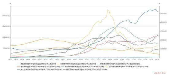 图31:世界主要经济体新增确诊人数(7日移动平均)