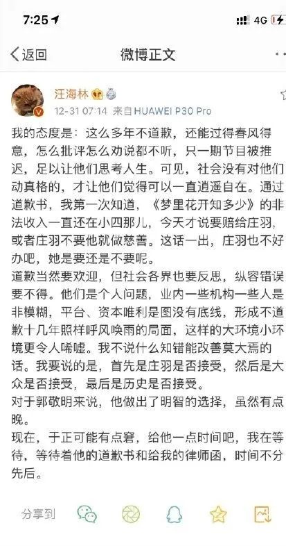 郭敬明、于正道歉了。在2020年的最后一天。12月31日的凌晨与上午,两人分别于微博发布了道歉信息。
