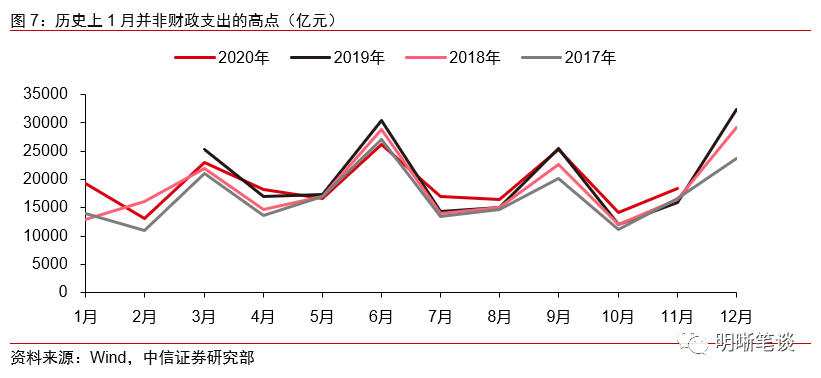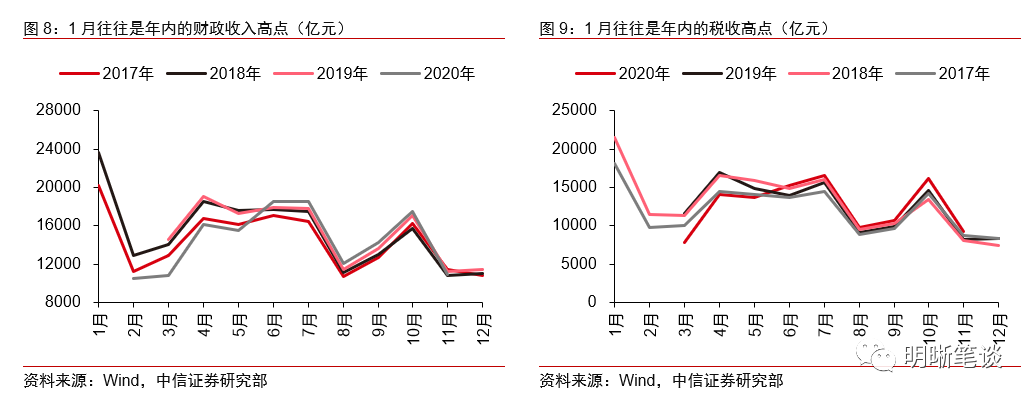 财政收支可能会对资金面形成扰动。从历史经验来看,1月份的财政支出在全年内往往处于低点。但根据中央经济工作会议的表述,今年财政政策应对不确定性发挥的作用非常关键;同时,2020年财政可能有较多结余资金,因此1月份财政支出力度有望加大。我们大致估计1月财政支出总额约在16500-17500亿元范围内。财政收入方面,1月是财政收入的高点,存在较大的缴税压力。1月份是一季度和全年税收收入最高的月份(1月需要汇算清缴企业所得税、个人所得税以及车船税),初步估计1月公共财政收入总量在26000-28000亿元左右,预计缴税总额在23000-25000亿元左右,预计第二周起缴税因素将开始影响银行间流动性。