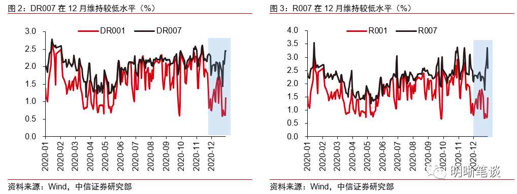 政府债供给方面,缴款压力适中。1月国债融资带来的缴款压力往往较小,但地方政府专项债存在一定压力。考虑到去年11月下达的2000亿元新增专项债额度仍未发放完毕,2021年1月专项债的发行总额或在8000亿元左右,新增一般债的发行额度或在700-1000亿元左右。由于1月地方政府债券到期量较少,初步预计1月份地方政府债券发行量缴款将给流动性带来一定压力。