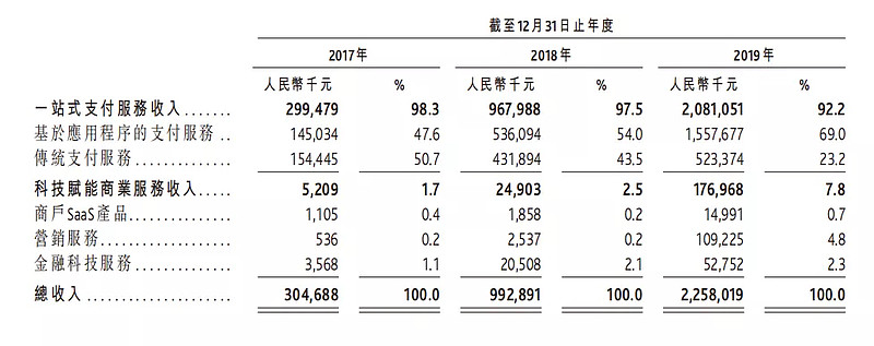 具体来看,汇付天下在收单业绩停止增长的情况下依然实现同比增长,其核心原因在于SaaS业绩的爆发,2019年汇付天下的SaaS业务营收同比暴增十倍,是三家收单平台中SaaS转化最好的平台。