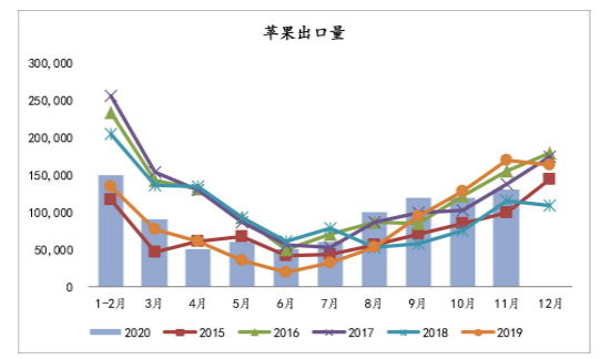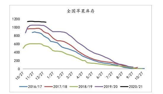 供应侧来看,从2020年苹果收获情况剖析,全国苹果减产事实基本定论,其主要汇聚于西北地区,原因是早春发生严重的倒春寒影响所致。其他地区来看,山东略有增产。整体而言,预计2020年全年苹果产量在4000万吨附近,减产幅度在5-10%区间,可即便如此还是低于市场原先预期的10-15%。可见,虽有减产,但不及预期,整体作用有限。
