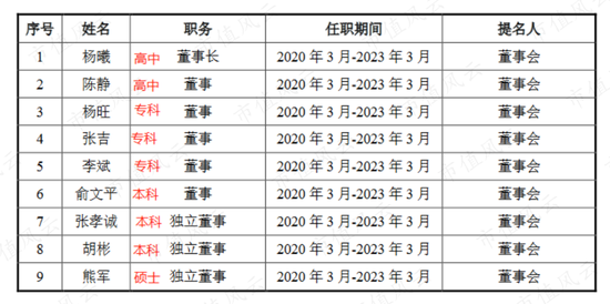 九位董事,除三名独董以外,剩下的学历不是高中就是专科。当然了,人家的学历如何这事并不存在任何违法违规,不应该说啥。