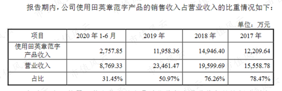 使用田英章范字形成的收入2017-2018年占营收总额的70%以上,可见田英章的范字是华夏万卷的主要收入来源。