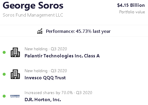 第十五位是George Soros。1969年George Soros创立了索罗斯基金管理有限责任公司,一家私人投资管理公司,它是最赚钱的公司之一,现在变成了家族办公室。2020年George Soros的总投资回报率为45.73%。从重仓的产品上看,消费类服务公司占比最多,达26.3%,代表企业是Liberty Broadband和达登饭店;还有19.3%的ETF,比如纳斯达克100ETF和投资级公司债ETF-iShares;占比第三的是技术服务类公司,一共18.1%,重仓的两个公司是Palantir Technologies和DraftKings Inc。