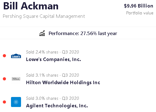 第十一位是Bill Ackman。他是一名价值投资者,倾向于购买被低估公司的股份、与管理层合作提高业绩。Bill Ackman于2003年创立了Pershing square capital management,专注于长期、价值导向的投资,并采用集中投资组合策略。2020年他的总投资回报率为27.56%。Bill Ackman目前持仓的企业非常少,一共是以下这些:消费者服务类企业:希尔顿、餐饮品牌国际、星巴克、墨氏烧烤;零售业公司劳氏;医疗科技公司安捷伦科技;金融企业Howard Hughes。这四个行业分别占比57.0%、19.9%、14.4%、8.7%。