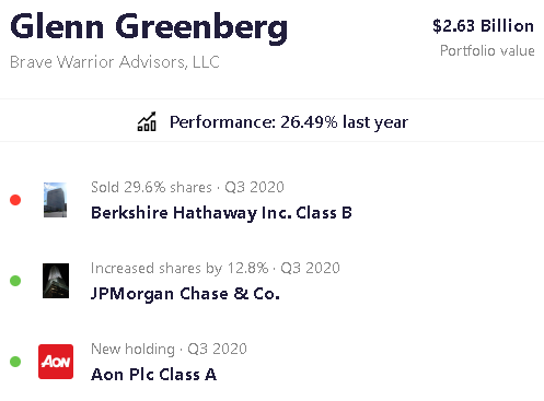 第十七位是Glenn Greenberg。他是首领资本管理公司(后更名为勇士顾问公司)的创始人,是一个坚定的价值投资者。2020年Glenn Greenberg的投资回报率是26.49%。从行业分布上来看,主要集中在金融和医疗服务两个行业,重仓的企业有:金融公司伯克希尔哈撒韦、摩根大通、怡安、Primerica、瑞杰金融、美国前进保险公司、嘉信理财,总占比63%;医疗服务公司:HCA控股和Anthem,总占比21.4%。