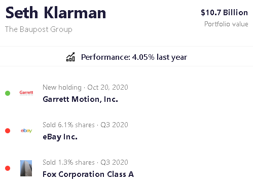 第十位是Seth Klarman。他是基金公司Baupost Group的创始人,在一份2017年评选的“史上最伟大的基金经理”名单中排名第四。2020年他的总投资回报率为4.05%。从重仓企业的行业分布来看,消费者服务类公司是他投资最多的行业,包括EBAY、福克斯、卫讯公司、自由全球、ViacomCBS,在总投资组合中一共占比49.1%;另外还重仓了一些电子科技类企业,如Qorvo和美光科技,占比16.3%。