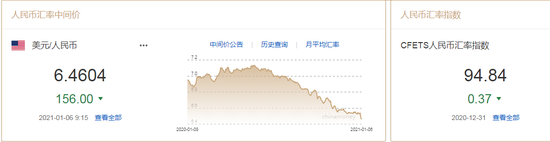 热点栏目1月6日,人民币中间价报6.4604,上调156点,升至2018年6月20日以来最高。上一交易日中间价报6.4760,在岸人民币上一交易日收报6.4640。