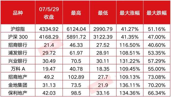 表4 2007/05/29-2008/04/23期间基金重仓股与主要指数涨、跌幅比较