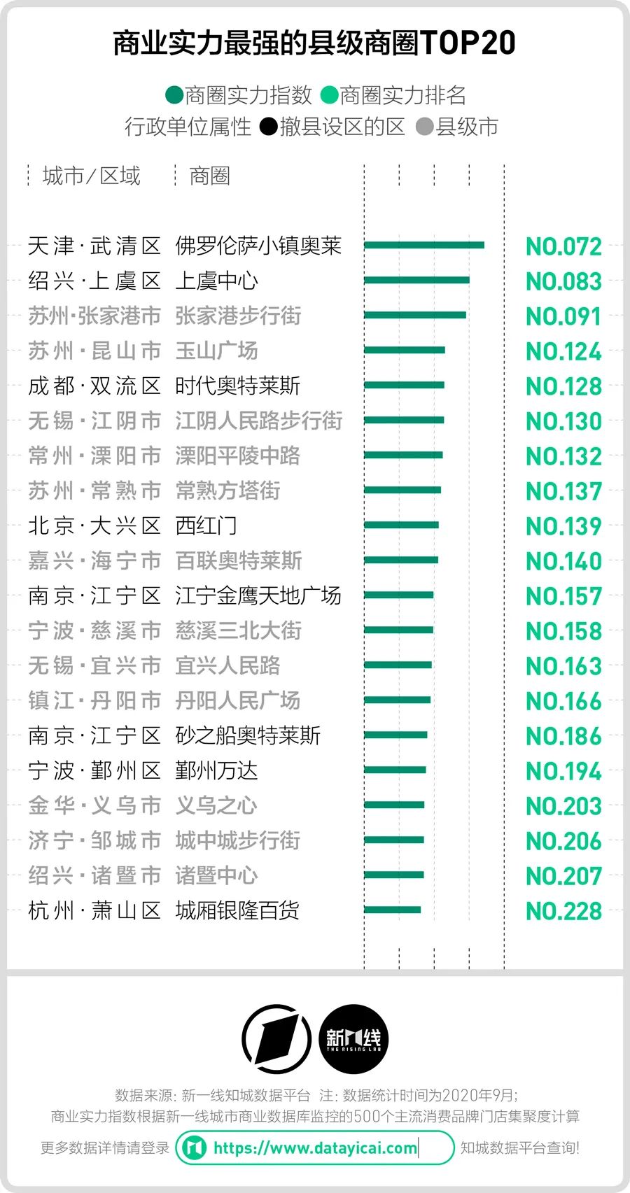 新一酱之前已经借助知城数据平台分析过《江苏最强的县级市商圈在哪里》,如果将视角放到全国,并纳入已经撤县设区的县域地区,则能看到层次更丰富的县级城市商圈能力。