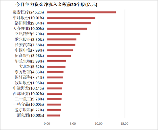 5、惠泰医疗主力资金净流入13.25亿元居首