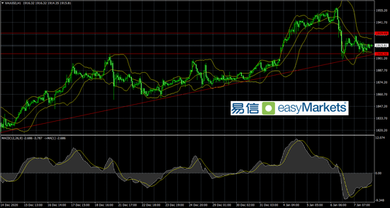 1月8日,昨日美元指数自低位反弹,目前正在挑战90位置的压力,显然市场对于美国民主党获得参众二院以及白宫有着积极评价和预期,认为新政府未来将顺利通过大规模财政刺激计划来提升经济。美股三大指数纷纷创出新高,在风险偏好情绪的打压下黄金低位震荡,目前在1910美元附近徘徊。