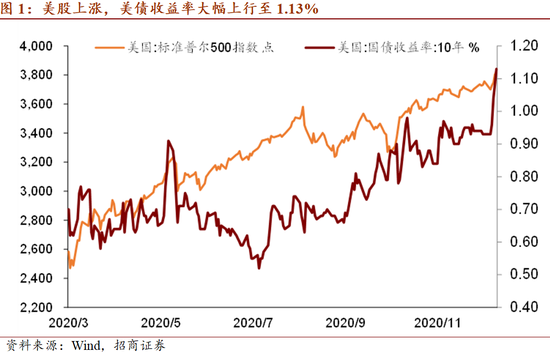 1.美国民主党在参议院占多数席,市场反映出对于短期积极财政刺激、保守货币政策和乐观经济前景的预期,美国10年期国债收益率上行至1.13%。标普500指数、道琼斯指数、纳斯达克综指分别变化0.6%、1.4%、-0.6%,其中对流动性敏感的纳斯达克指数下跌、更受益于经济改善的道琼斯指数上涨,金融、工业板块表现强劲;美元指数小幅下行0.1%,符合近期弱势的局面;伦敦现货黄金价格下跌0.4%至1932美元/盎司。更长期而言,拜登的部分政策方向——包括加税和金融监管等——对美股可能构成风险。由于民主党的席位优势非常微弱,其影响是否如预期般显著,尚且存疑。