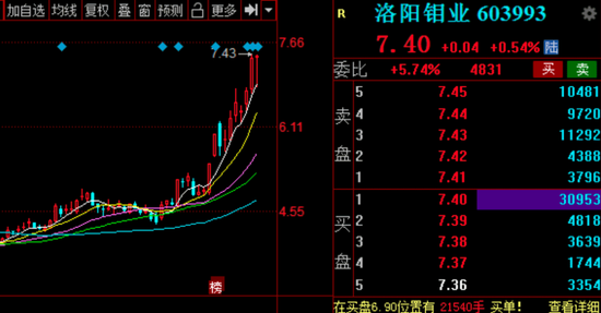 数据显示,从2020年12月中旬至今,其股价涨幅超过70%,股价创下了近两年的新高。而根据目前洛阳钼业7.4元/股的股价,杉杉股份剩余股份浮盈超过90%。