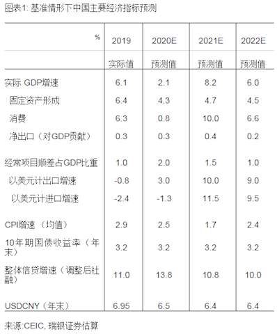 我们假设随着多个疫苗陆续上市并大范围接种,2021年二季度开始全球新冠确诊病例将大幅减少。我们预计中美关系基本维持现状、没有明显改善,而且双方继续落实第一阶段贸易协定。我们预计全球经济复苏将支撑2021年中国出口增长10%,进而推动实际GDP增长8.2%。我们预计财政支持将减少、信贷增速将放缓,宏观杠杆将小幅下降,央行货币政策有所收紧但仅在下半年小幅加息。我们认为政策正常化对经济增长的影响较为有限,但可能会引发更多违约、导致市场波动加剧。我们预计对互联网金融的监管将加强、平台型企业面临反垄断政策压力,但同时政策会继续支持自主创新和科技发展。我们预计房地产销售和投资将温和放缓,并预计2021年年内人民币兑美元汇率将走强至6.2,但年底回落至6.4。