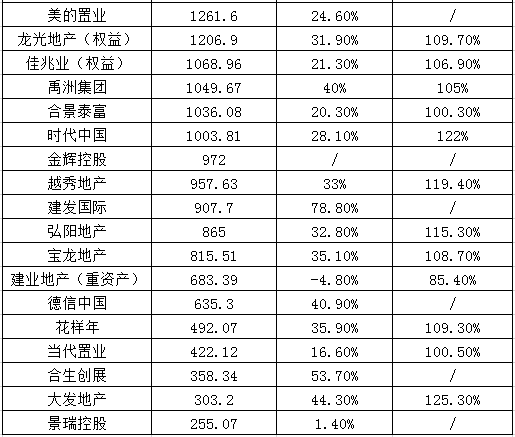 此外,还有4家企业未完成年度目标,分别为建业地产(重资产销售)、富力地产、融创中国、中南建设。