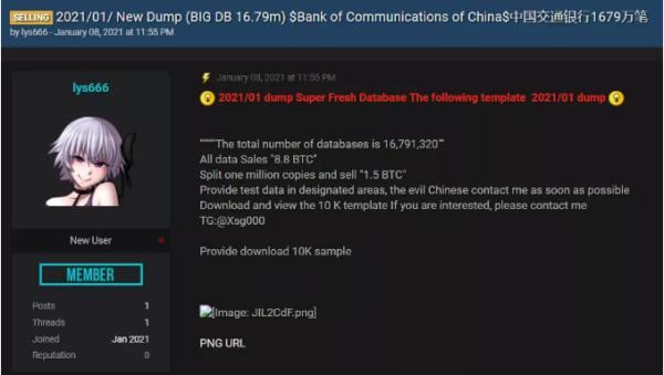 近日,我行监测到,有不法分子在暗网发帖贩卖所谓交行客户信息,并有部分自媒体转发相关信息。经系统核查比对,确认与我行真实客户信息不符。