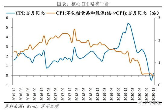 12月剔除食品和能源价格的核心CPI同比上涨0.4%,此前连续5个月处于0.5%的历史低位。本月核心CPI略有下滑主要是受散点疫情的影响,随着经济持续恢复,预计核心CPI有望低位回升。