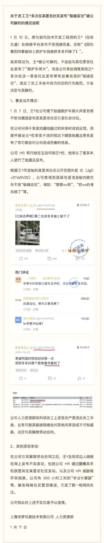 在王太虚承认之后,用“违反员工纪律制度,公开发布危害公司的言论。”的理由,直接把王太虚给辞退了。。。