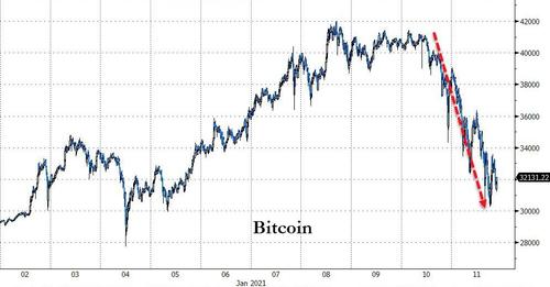 同时比特币重挫入熊,周一大跌15%,上周日和周一最深跌去26%,创下2020年3月以来最大两日跌幅。