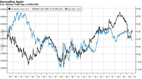 Ye Xie认为,利差并非推动美元升值的主要因素,但是如果更多的财政支出导致美国经济表现出色,美元可能会滑至“微笑曲线”的右侧,在该曲线中,强劲的增长意味着更高的美元。