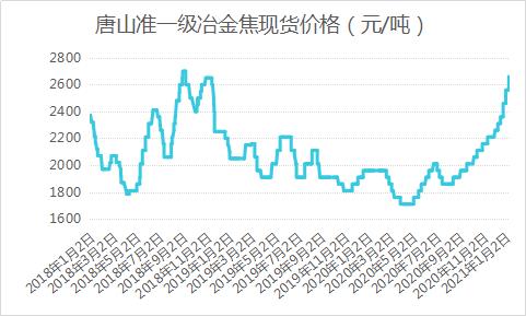 继上周第12轮提涨落地之后,本周一多地焦企开启第13轮提涨,涨幅仍为100元/吨,部分钢厂已于昨晚接受,今日提涨落地范围进一步扩大。随着本轮提涨落地执行,唐山准一级冶金焦现货价格现已升至2018年9月中旬以来新高。