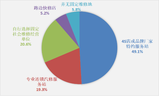 选择无固定维修地和路边快修店仅占5.8%和5.2%。
